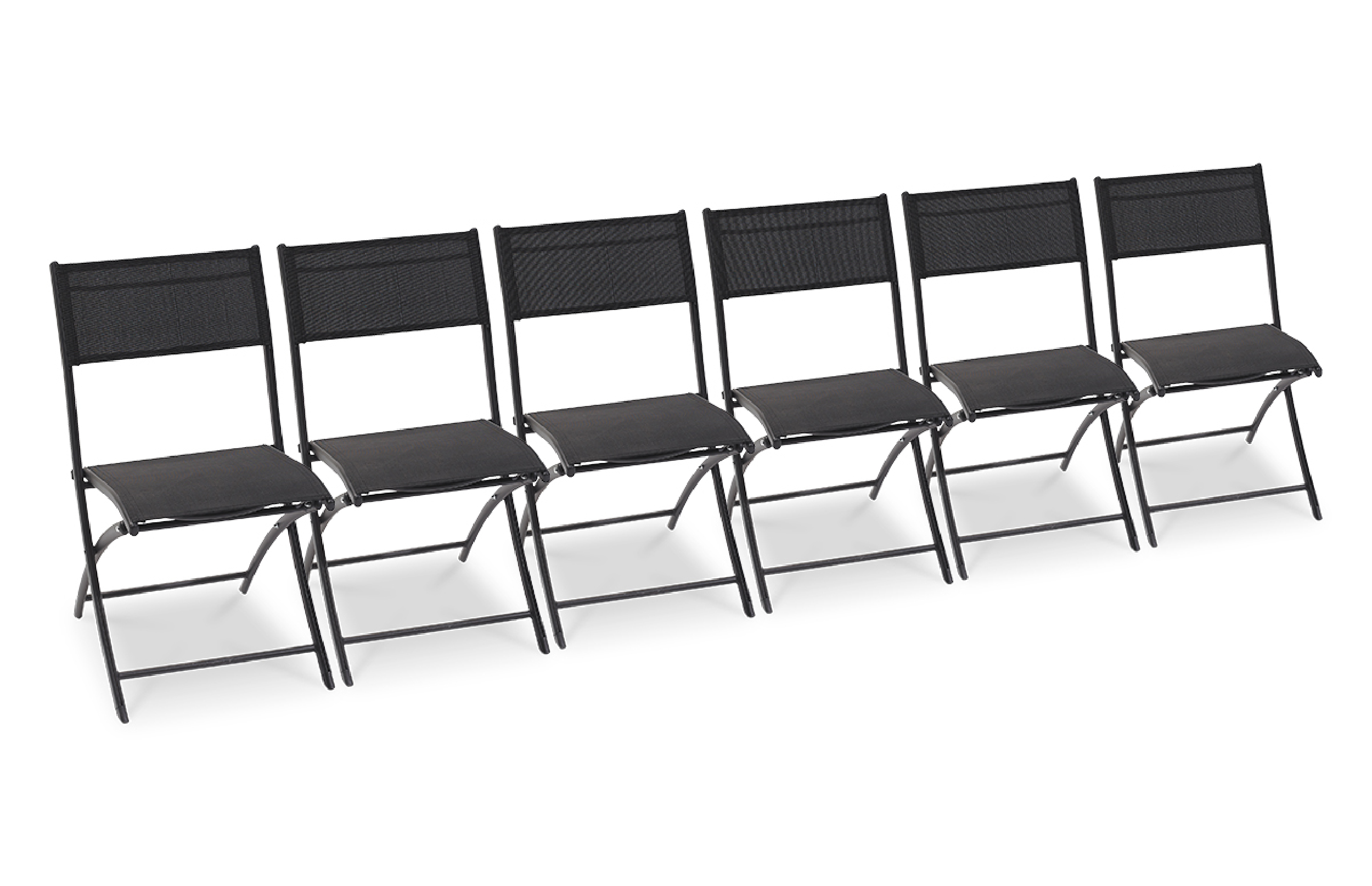 Lot de 6 chaises de jardin pliantes C43 en aluminium et toile plastifiée.
