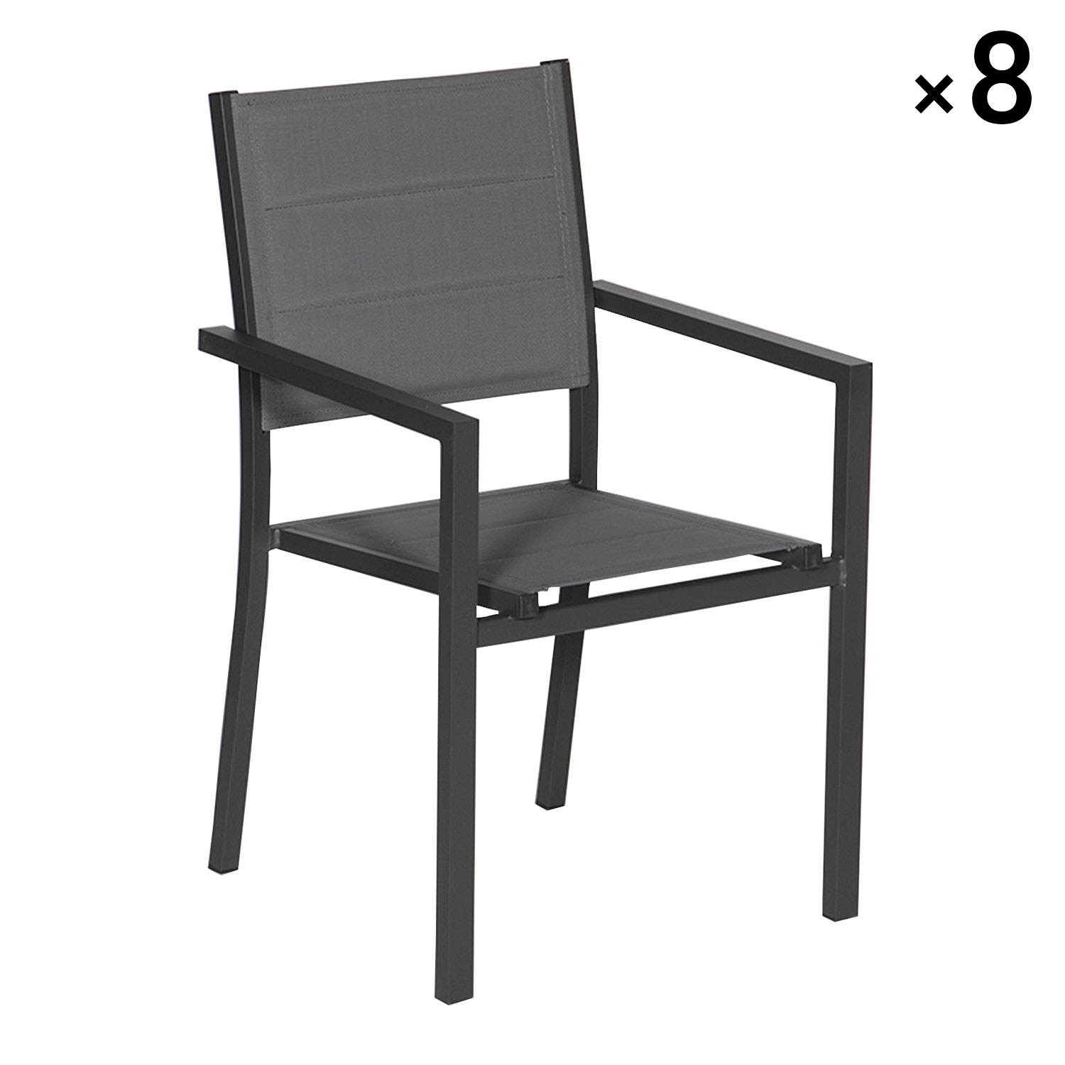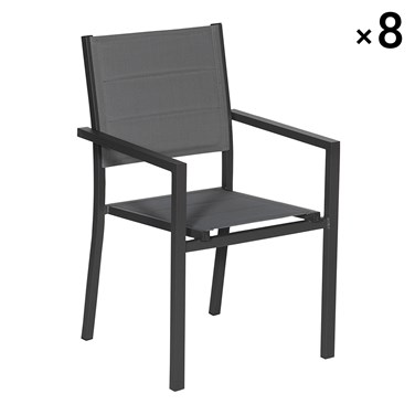Lot de 8 chaises rembourrées en aluminium anthracite - textilène gris
