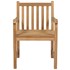Avec un design rustique et pratique, cet ensemble de chaises d'extérieur en bois portera votre espace de vie extérieur à un niveau supérieur ! Fabriquée en bois dur de teck extrêmement durable, cette pièce de meuble en teck a été chevronnée, séchée au four puis finement poncée pour lui donner un aspect très lisse. Le bois de teck est connu pour sa résistance exceptionnelle aux intempéries, ce qui le rend bien plus adapté aux meubles de jardin que tout autre type de bois. Le bois de teck est le choix idéal si vous souhaitez acheter un meuble de jardin durable. Elles ont été appliquées avec une belle finition pour donner au bois une couleur chaude. Les chaises ont un look raffiné qui peut se fondre instantanément dans n'importe quel décor de jardin ou de patio. L'ensemble est également le choix idéal pour des moments de détente dans une maison de campagne romantique ou près d'un étang idyllique. Remarque : Afin de prolonger la durée de vie de vos meubles d'extérieur, nous vous recommandons de les nettoyer régulièrement et de ne pas les laisser à l'extérieur sans protection inutilement.Nettoyage : Utiliser une solution savonneuse douceStockage : Si possible, stockez dans un endroit frais et sec à l'intérieur. Si le produit est stocké à l'extérieur, protégez-le avec une housse imperméable. Essuyez et séchez l'excès d'eau ou de neige des surfaces planes après la pluie ou une chute de neige. Permettez une circulation d'air suffisante afin d'éviter les dommages liés à l'humidité.