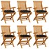 Cet ensemble de chaises de jardin en bois se compose de 6 pièces et est destiné à être un excellent supplément à votre jardin, terrasse ou patio. Vous pouvez vous détendre et discuter avec la famille et les amis ou profiter du bon temps. Fabriquée en bois dur de teck extrêmement durable, cette pièce de meuble en teck a été chevronnée, séchée au four puis finement poncée pour lui donner un aspect très lisse. Le bois de teck est connu pour sa résistance exceptionnelle aux intempéries, ce qui le rend bien plus adapté aux meubles de jardin que tout autre type de bois. Le bois de teck est le choix idéal si vous souhaitez acheter une pièce de meubles de jardin durable. La surface poncée est facile à nettoyer avec un chiffon humide. Ces chaises d'extérieur sont également légères, ce qui les rend complètement flexibles et faciles à déplacer. Les chaises en bois peuvent être pliées pour gagner de la place lorsqu'elles ne sont pas utilisées. De plus, les coussins de siège inclus bien rembourrés offrent également un confort d'assise supplémentaire.