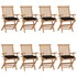 Maison exclusive - chaises de jardin avec coussins noir lot de 8 bois teck massi