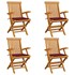 Cet ensemble de chaises de jardin en bois se compose de 4 pièces et est destiné à être un excellent supplément à votre jardin, terrasse ou patio. Vous pouvez vous détendre et discuter avec la famille et les amis ou profiter du bon temps. Fabriquée en bois dur de teck extrêmement durable, cette pièce de meuble en teck a été chevronnée, séchée au four puis finement poncée pour lui donner un aspect très lisse. Le bois de teck est connu pour sa résistance exceptionnelle aux intempéries, ce qui le rend bien plus adapté aux meubles de jardin que tout autre type de bois. Le bois de teck est le choix idéal si vous souhaitez acheter une pièce de meubles de jardin durable. La surface poncée est facile à nettoyer avec un chiffon humide. Ces chaises d'extérieur sont également légères, ce qui les rend complètement flexibles et faciles à déplacer. Les chaises en bois peuvent être pliées pour gagner de la place lorsqu'elles ne sont pas utilisées. De plus, les coussins de siège inclus offrent également un confort d'assise supplémentaire.