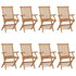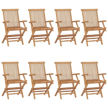 Cet ensemble de chaises de jardin en bois se compose de 8 pièces et est destiné à être un excellent supplément à votre jardin, terrasse ou patio. Vous pouvez vous détendre et discuter avec la famille et les amis ou profiter du bon temps. Fabriquée en bois dur de teck extrêmement durable, cette pièce de meuble en teck a été chevronnée, séchée au four puis finement poncée pour lui donner un aspect très lisse. Le bois de teck est connu pour sa résistance exceptionnelle aux intempéries, ce qui le rend bien plus adapté aux meubles de jardin que tout autre type de bois. Le bois de teck est le choix idéal si vous souhaitez acheter une pièce de meubles de jardin durable. La surface poncée est facile à nettoyer avec un chiffon humide. Ces chaises d'extérieur sont également légères, ce qui les rend complètement flexibles et faciles à déplacer. Les chaises en bois peuvent être pliées pour gagner de la place lorsqu'elles ne sont pas utilisées. De plus, les coussins de siège inclus bien rembourrés offrent également un confort d'assise supplémentaire. Remarque : afin de prolonger la durée de vie des meubles d'extérieur, nous vous recommandons de les protéger avec une housse imperméable.