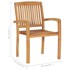 Ajoutez une touche de charme rustique à votre salle à manger, jardin ou terrasse avec ces chaises empilables de jardin intelligemment conçues ! Robuste et stable : le bois de teck massif est un matériau naturel magnifique. Il a été chevronné, séché au four, puis sablé finement pour lui donner une apparence très lisse. Le bois de teck est connu pour sa résistance exceptionnelle et sa résistance aux intempéries.Facile à entretenir : grâce à sa surface lisse, le banc en bois se nettoie facilement à l'aide d'un chiffon humide et nécessite peu d'entretien.Conception pratique : ces chaises de salle à manger peuvent être facilement pliées lorsqu'elles ne sont pas utilisées et ne prendront pas trop de place. Bon à savoir :Pour que vos meubles d'extérieur restent beaux, nous vous recommandons de les protéger avec une housse imperméable.