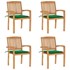 Ajoutez une touche de charme rustique à votre salle à manger, jardin ou terrasse avec cet ensemble de chaises de jardin empilables avec ensemble de coussins ! La chaise de salle à manger élève votre espace de vie intérieur ou extérieur à un niveau supérieur avec un design à lattes et élégant. Cet ensemble de meubles en teck est fabriqué à partir de bois dur de teck extrêmement durable et est chevronné, séché au four et poncé finement pour lui donner un aspect très lisse. Le bois de teck est connu pour sa solidité et sa résistance aux intempéries exceptionnelles, ce qui le rend bien plus adapté aux meubles de jardin que tout autre type de bois. Le bois de teck est le choix parfait si vous souhaitez acheter un meuble de jardin durable. Il est facile à entretenir et à nettoyer avec un chiffon humide. De plus, la chaise de salle à manger peut être empilée pour économiser de l'espace de stockage lorsqu'elle n'est pas utilisée. De plus, les coussins inclus offrent un confort supplémentaire. Chaque coussin a 2 jeux de cordes pour le fixer fermement sur la chaise. Remarque : afin de prolonger la durée de vie de vos meubles d'extérieur, nous vous recommandons de les nettoyer régulièrement et de ne pas les laisser à l'extérieur sans protection inutilement.Nettoyage : utiliser une solution savonneuse douceStockage : si possible, stockez dans un endroit frais et sec à l'intérieur. Si le produit est stocké à l'extérieur, protégez-le avec une housse imperméable. Essuyez et séchez l'excès d'eau ou de neige des surfaces planes après la pluie ou une chute de neige. Permettez une circulation d'air suffisante afin d'éviter les dommages liés à l'humidité.