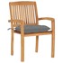 Ajoutez une touche de charme rustique à votre salle à manger, jardin ou terrasse avec cet ensemble de chaises de jardin empilables avec ensemble de coussins ! La chaise de salle à manger élève votre espace de vie intérieur ou extérieur à un niveau supérieur avec un design à lattes et élégant. Cet ensemble de meubles en teck est fabriqué à partir de bois dur de teck extrêmement durable et est chevronné, séché au four et poncé finement pour lui donner un aspect très lisse. Le bois de teck est connu pour sa solidité et sa résistance aux intempéries exceptionnelles, ce qui le rend bien plus adapté aux meubles de jardin que tout autre type de bois. Le bois de teck est le choix parfait si vous souhaitez acheter un meuble de jardin durable. Il est facile à entretenir et à nettoyer avec un chiffon humide. De plus, la chaise de salle à manger peut être empilée pour économiser de l'espace de stockage lorsqu'elle n'est pas utilisée. De plus, les coussins inclus offrent un confort supplémentaire. Chaque coussin a 2 jeux de cordes pour le fixer fermement sur la chaise. Remarque : afin de prolonger la durée de vie de vos meubles d'extérieur, nous vous recommandons de les nettoyer régulièrement et de ne pas les laisser à l'extérieur sans protection inutilement.Nettoyage : utiliser une solution savonneuse douceStockage : si possible, stockez dans un endroit frais et sec à l'intérieur. Si le produit est stocké à l'extérieur, protégez-le avec une housse imperméable. Essuyez et séchez l'excès d'eau ou de neige des surfaces planes après la pluie ou une chute de neige. Permettez une circulation d'air suffisante afin d'éviter les dommages liés à l'humidité.