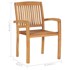 Ajoutez une touche de charme rustique à votre salle à manger, jardin ou terrasse avec cet ensemble de chaises de jardin empilables ! La chaise de salle à manger élève votre espace de vie intérieur ou extérieur à un niveau supérieur avec un design à lattes et élégant. Cet ensemble de meubles en teck est construit en bois de teck extrêmement durable et est assaisonné, séché au four et poncé fin pour donner un aspect très lisse. Le bois de teck est connu pour sa résistance et sa résistance aux intempéries exceptionnelles, ce qui le rend beaucoup plus adapté aux meubles de jardin que tout autre type de bois. Le bois de teck est le choix parfait si vous souhaitez acheter un meuble de jardin durable. Il est facile à entretenir et à nettoyer avec un chiffon humide. De plus, la chaise de salle à manger peut être empilée pour économiser de l'espace de stockage lorsqu'elle n'est pas utilisée. Remarque : afin de prolonger la durée de vie des meubles d'extérieur, nous vous recommandons de les protéger avec une housse imperméable.