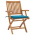 Cet ensemble de chaises de jardin en bois présente un design intemporel. Les chaises d’extérieur conviennent à tous les environnements, tels que les maisons, les bureaux, les bars et les cafés, grâce à leur design simple mais élégant. Fabriqué en bois dur de teck extrêmement durable, cet ensemble de meubles en teck a été chevronné, séché au four puis finement poncé pour lui donner un aspect très lisse. Le bois de teck est connu pour sa résistance exceptionnelle aux intempéries, ce qui le rend bien plus adapté aux meubles de jardin que tout autre type de bois. Le bois de teck est le choix idéal si vous souhaitez acheter un meuble de jardin durable. Grâce à la surface sablée, les chaises de salle à manger sont résistantes aux intempéries et faciles à nettoyer. Elles peuvent également être pliées pour économiser de l’espace de stockage lorsqu'elles ne sont pas utilisées. De plus, les coussins fournis offrent un confort supplémentaire. Chaque coussin dispose de 2 ensembles de cordes pour le fixer solidement sur la chaise. Remarque : afin de prolonger la durée de vie de vos meubles d'extérieur, nous vous recommandons de les nettoyer régulièrement et de ne pas les laisser à l'extérieur sans protection inutilement.Nettoyage : utiliser une solution savonneuse douceStockage : si possible, stockez dans un endroit frais et sec à l'intérieur. Si le produit est stocké à l'extérieur, protégez-le avec une housse imperméable. Essuyez et séchez l'excès d'eau ou de neige des surfaces planes après la pluie ou une chute de neige. Permettez une circulation d'air suffisante afin d'éviter les dommages liés à l'humidité.
