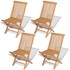 Cet ensemble de 4 chaises d'extérieur pliables en teck massif fera un ajout intemporel à votre jardin, terrasse ou balcon ! Ce sera un excellent choix pour manger en plein air. Robuste et stable : le bois de teck massif est un matériau naturel magnifique. Il a été chevronné, séché au four, puis sablé finement pour lui donner une apparence très lisse. Le bois de teck est connu pour sa résistance exceptionnelle et sa résistance aux intempéries.Expérience d'assise confortable : dotée d'un dossier, la chaise d'extérieur vous offre un confort optimal.Conception pratique : ces chaises pliantes peuvent être facilement rabattues lorsqu'elles ne sont pas utilisées et elles ne prendront pas trop de place.Nombreuses applications : les chaises conviendront à une grande variété d'endroits, tels que des maisons, des bureaux, des bars et des cafés, grâce à leur conception simple mais élégante. Bon à savoir :Pour que vos meubles d'extérieur restent beaux, nous vous recommandons de les protéger avec une housse imperméable.