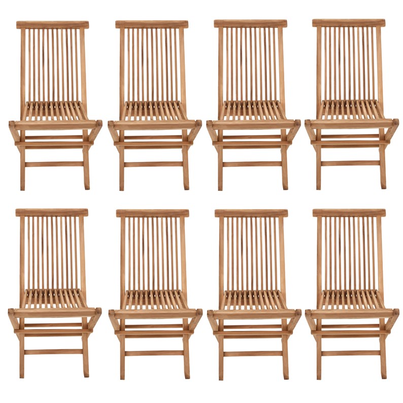 Lot de chaises pliantes en teck, teinte naturelle. Élégantes et confortables, elles s’intégreront à tout type de lieu et d’espace, aussi bien en intérieur qu’en extérieur. Grâce à leur design moderne et intemporel, elles embelliront votre salon, votre jardin, votre terrasse, votre véranda ou votre balcon. Elles complèteront également votre table d’extérieur pour recevoir confortablement vos amis autour de repas conviviaux. Le teck est un matériaux robuste et durable, par essence adapté à l’utilisation en extérieur. Il résiste aux intempéries et assurera longévité à votre produit. Très pratiques, ces chaises sont légères et pliantes, et donc faciles à déplacer et à ranger.
