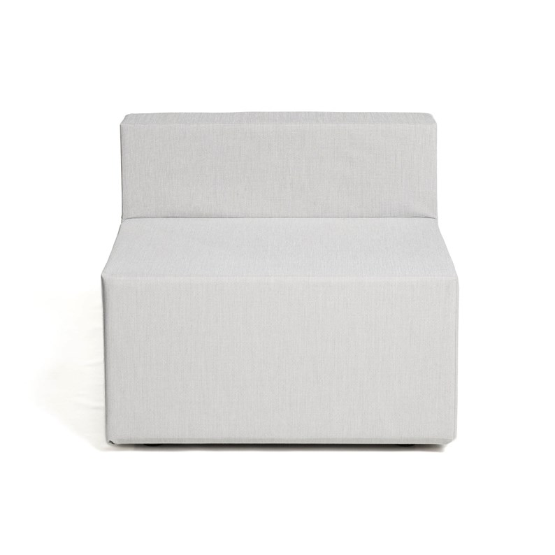 80x80 cm, hauteur assise 38 cm, hauteur dossier 25 cm.