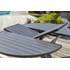 Ensemble repas PELOSA composé d'une table ovale à rallonge en aluminium gris anthracite et de 8 fauteuils empilables en aluminium gris anthracite. Coussins déhoussables en toile 100% polyester gris clair.