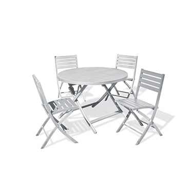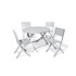 Table de jardin pliante MARIUS en aluminium composé d'une table ronde pliante et de 4 chaises de jardin pliantes.