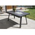 Ensemble repas STOCKHOLM composé d'une table en aluminium gris anthracite et de 4 chaises empilables en toile plastifiée et structure en aluminium gris anthracite. Table équipée d'une rallonge manuelle.