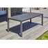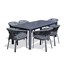 Ensemble repas CAMARGUE composé d'une table en aluminium gris anthracite et plateau céramique sur verre et de 6 fauteuils empilables en corde gris anthracite et structure aluminium gris anthracite. Coussins déhoussables en toile 100% polyester gris anthracite.