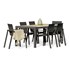 Ensemble repas VENISE composé d'une table fixe en aluminium gris anthracite avec plateau céramique beige aspect pierre naturelle et de 6 fauteuils en aluminium et toile plastifiée.