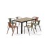 Ensemble repas BOSTON composé d'une table en aluminium gris anthracite avec plateau en polywood imitation bois et de 6 fauteuils de jardin empilables en polypropylène.