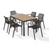 Ensemble repas BOSTON composé d'une table en aluminium gris anthracite avec plateau en polywood imitation bois et de 6 fauteuils de jardin empilables en polypropylène.