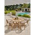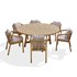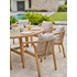 Ensemble repas de jardin SERENA 6 places certifié FSC® 100% en bois d'acacia composé d'une table ronde et de 6 fauteuils avec une structure certifié FSC® 100% en bois d'acacia et une assise et un dossier en corde tissée.
