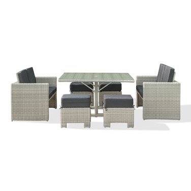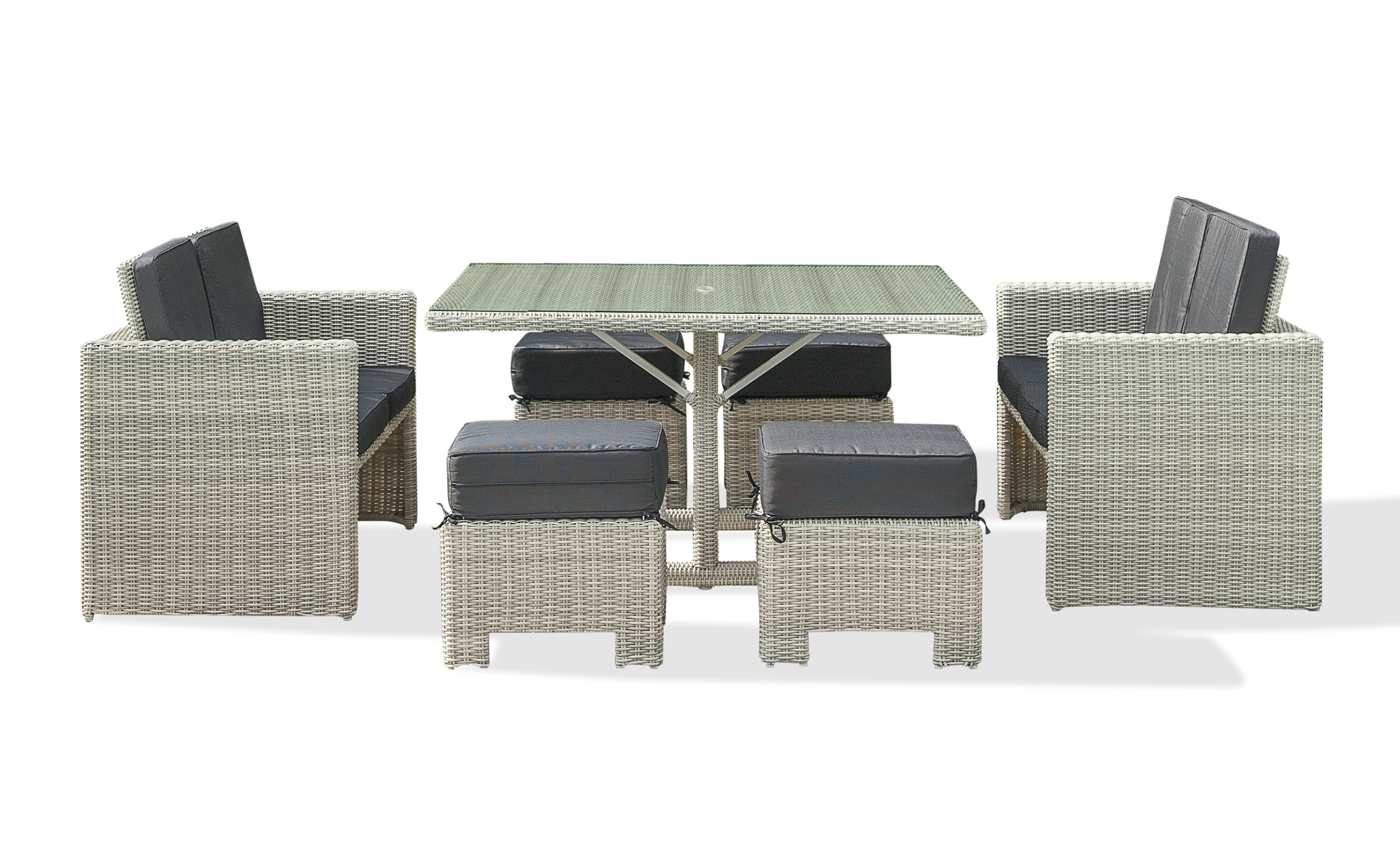 Ensemble repas de jardin encastrable 8 places en résine tressée crème