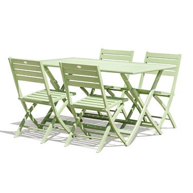 Table de jardin pliante MARIUS en aluminium composé d'une table de jardin pliante et de 4 chaises de jardin pliantes.