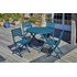 Table de jardin pliante MARIUS en aluminium composé d'une table ronde pliante et de 4 chaises de jardin pliantes.