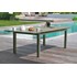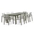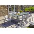 Ensemble repas MIAMI en aluminium composé d'une table avec rallonge automatique et de 8 fauteuils empilables en toile plastifiée et structure aluminium.