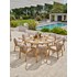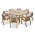Ensemble repas de jardin SERENA 8 places certifié FSC® 100% en bois d'acacia composé d'une table ronde et de 8 fauteuils avec une structure certifié FSC® 100% en bois d'acacia et une assise et un dossier en corde tissée.