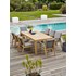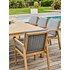 Ensemble repas de jardin SULLANA 8 places certifié FSC® 100% en bois d'acacia composé d'une table avec pose-plat en granit naturel et de 8 fauteuils avec une structure en bois et d'accoudoirs et dossier en cordage gris anthracite.
