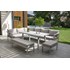 Salon de jardin ANTALYA 9 places en aluminium, composé de 1 table, 1 canapé 3 pl avec assise réhaussable, 1 méridienne, 1 banc 2 pl, 1 banc 1 pl. Coussins déhoussables 250 g/m² garni polyester (20kg/m3).