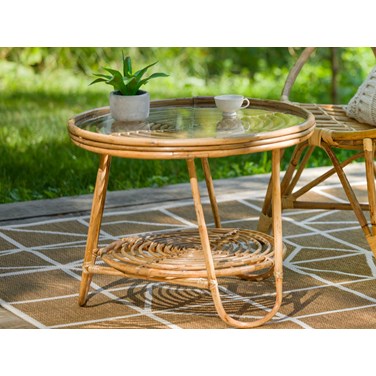 Table basse ronde en rotin avec plateau en verre - Jardiline  En savoir plus