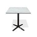 Table carrée de jardin BISTRO en acier noir et plateau HPL effet marbre blanc.