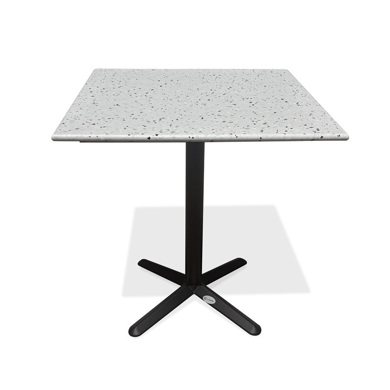 Table carrée de jardin BISTRO en acier noir et plateau terrazzo.