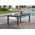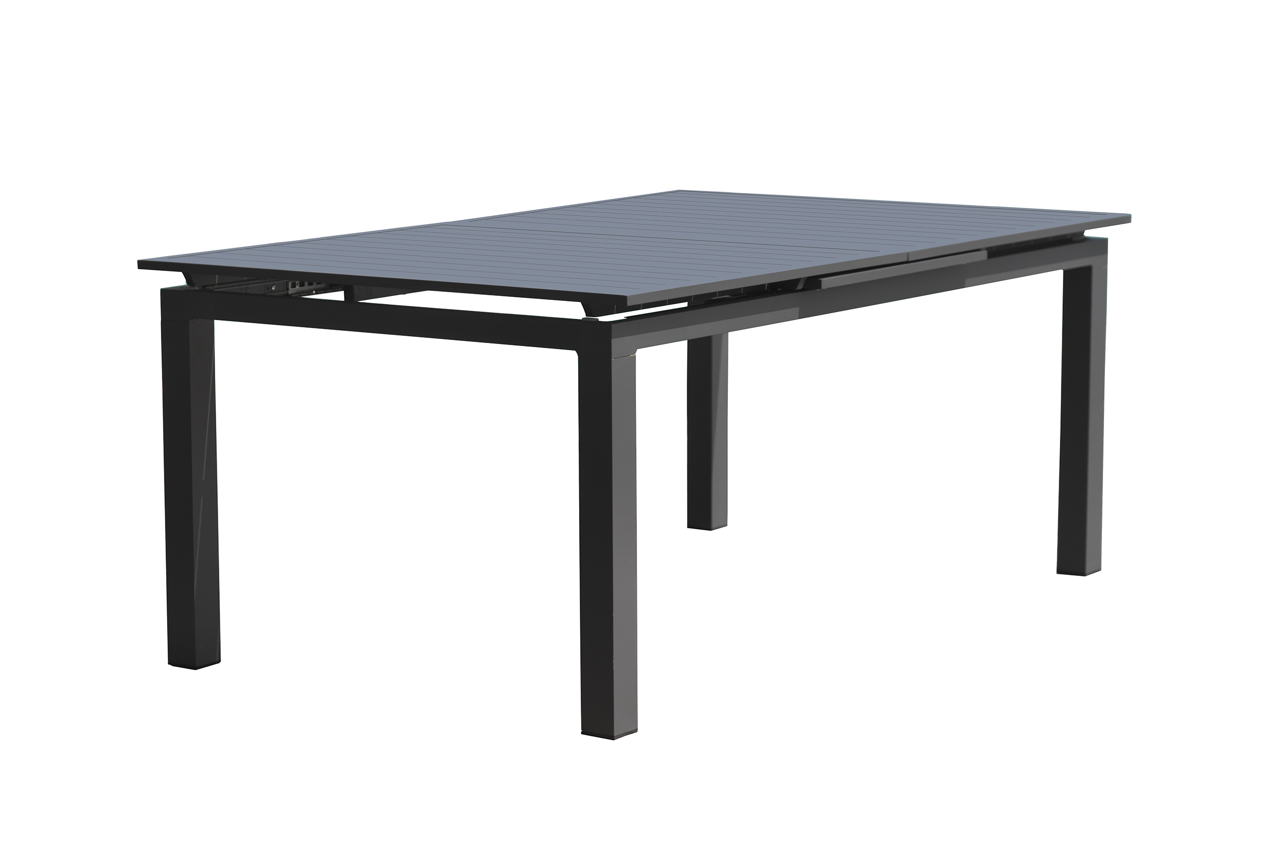 Table de jardin ALU-MIAMI en aluminium avec plateau en lames aluminium, équipée d'une rallonge automatique.