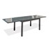 Table de jardin TOLEDE en aluminium gris anthracite avec plateau verre et rallonge intégrée, discrète et astucieuse.