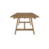 Composée de teck massif, cette table résiste aux intempéries. Le bois exotique, emblématique du mobilier extérieur, se caractérise par des teintes nuancées. Les lattes du plateau forment un ensemble dynamique. Le piètement incliné est renforcé par une structure qui sert également de repose-pied.