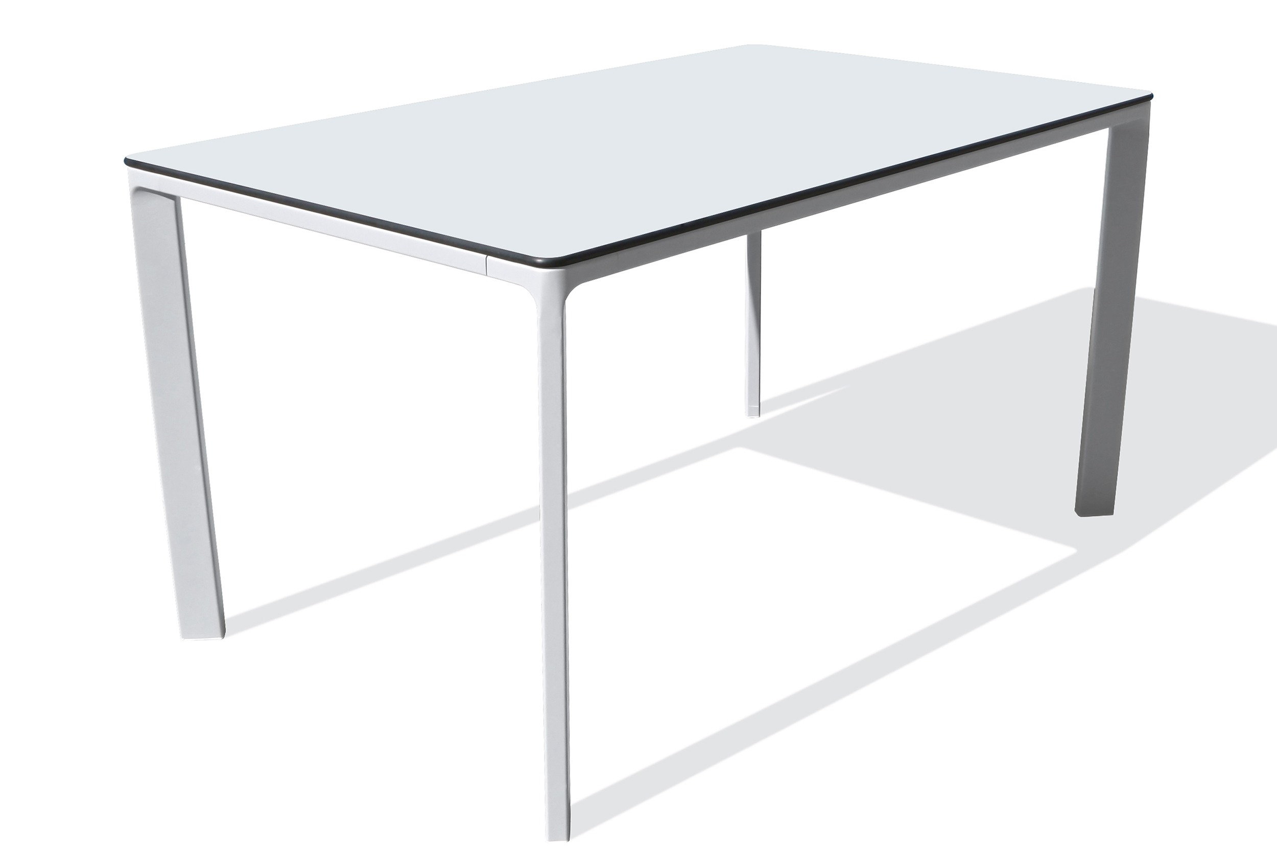Table de jardin rectangulaire MEET empilable en aluminium avec peinture Epoxy. Assemblage : fonte d'aluminium. Plateau en stratifié compact de haute densité. Solide et facile d'entretien.