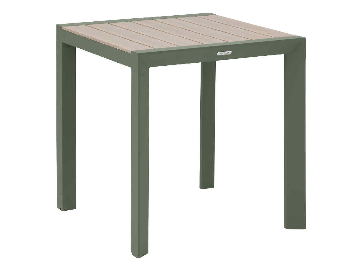 Table de jardin carrée alu evasion 2 places effet bois lin et laurier- hespéride