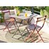 Peinture époxy mate, cette table de jardin pliante Hespéride peut se ranger simplement et elle tient debout seule une fois pliée.