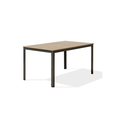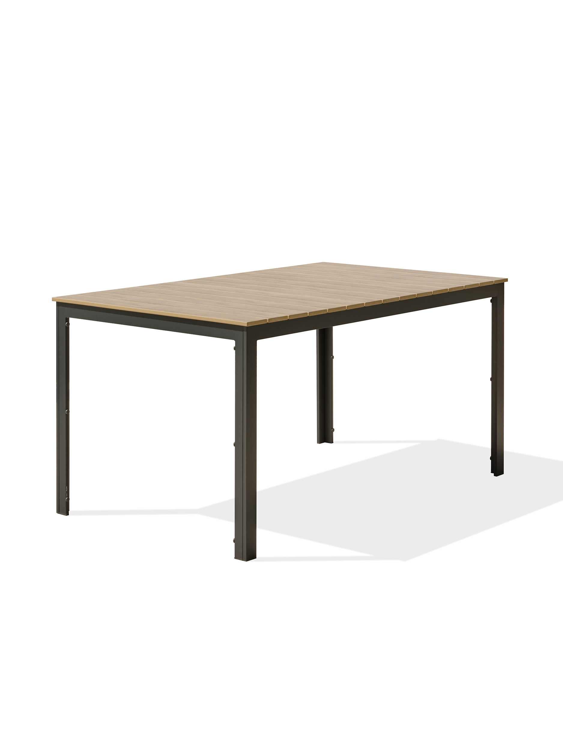 Table de jardin BOSTON rectangulaire fixe en aluminium avec plateau en polywood imitation bois.