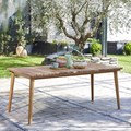 Cette table en bois de teck rectangulaire se démarque des autres grâce à sa forme moderne. Conviviale et chaleureuse avec ses larges lattes sur le dessus, elle sera une pièce incontournable de votre extérieur ! Ses dimensions généreuses lui permettent d'accueillir jusqu'à 8 personnes confortablement. Caractéristiques : Matière : teck - Couleur : Naturel - Hauteur : 75 cm - Longueur : 180 cm - Largeur : 90 cm - Poids : 40 kg - Garantie : 5 ans - Montage : Pieds à monter. Les + : Lignes épurées et modernes – Pieds compas.