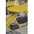 Table de jardin ronde pliante MARIUS avec plateau en lames aluminium.