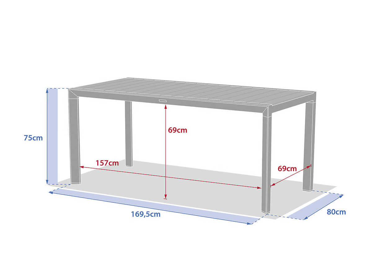 Dimensions (L x l x H):169,5 x 80 x 75 cm