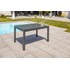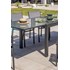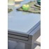 Table de jardin TOLEDE en aluminium gris anthracite avec plateau verre et rallonge intégrée, discrète et astucieuse.