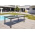 Table de jardin TOLEDE en aluminium gris anthracite avec plateau verre et rallonge intégrée, discrète et astucieuse.