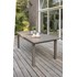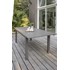 Table de jardin ZAHARA en aluminium avec plateau en lames aluminium, équipée d'une rallonge automatique.
