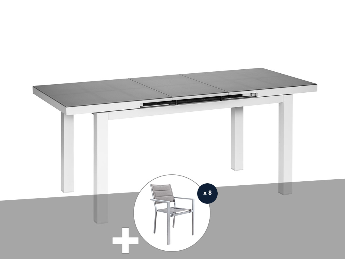 Table et chaise de jardin en aluminium gris perle ibiza perle avec 8 chaises - j