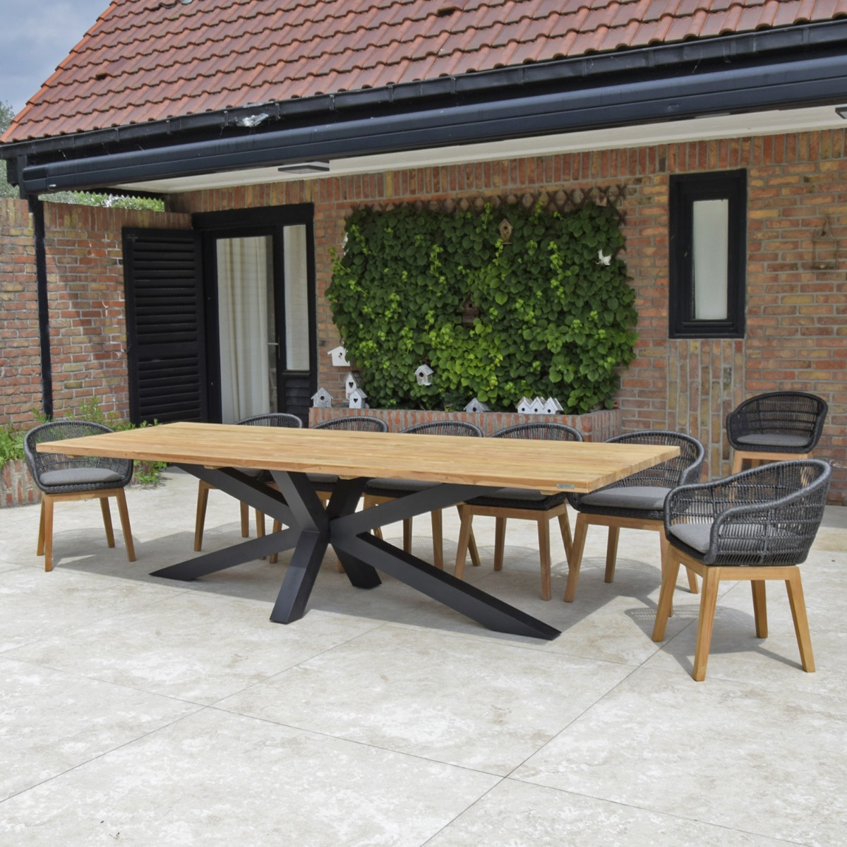Table en aluminium noir et teck massif recyclé 300 cm, Conceptual