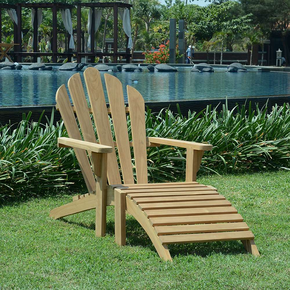 La chaise longue Adirondack est fabriquée dans un teck massif certifié FSC® dans les règles de l'ébénisterie avec un assemblage par tenons et mortaises.