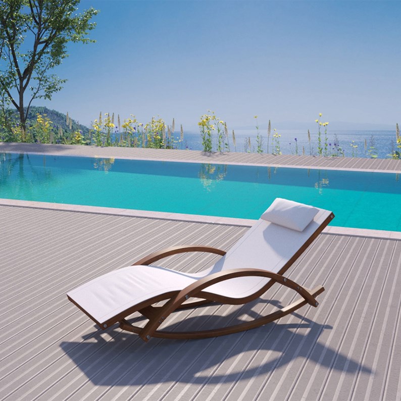 Relaxez-vous cet ete dans votre jardin ou sur votre terrasse grâce à ce joli transat ! Sa structure en bois et sa couleur epuree ajouteront une touche decorative à votre exterieur. Ce transat à bascule Alcoba vous bercera sous les rayons de soleil estivaux.